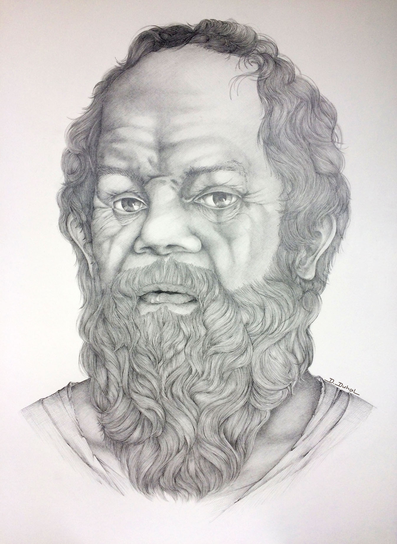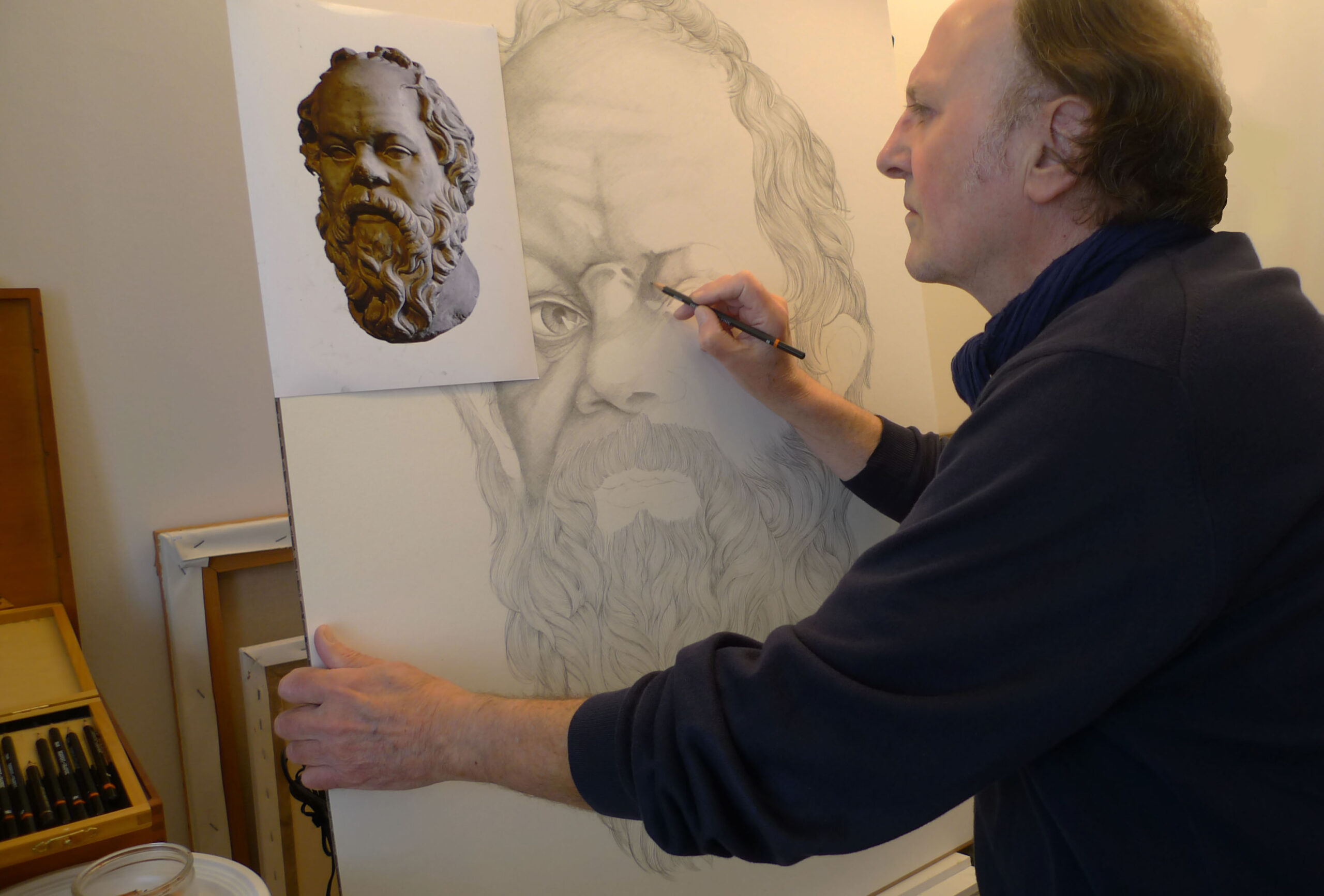 VENDU - L’ÉCRIVAIN D’APRÈS UN MARBRE BLANC DU LOUVRES - Crayon blanc sur papier noir - 39 x 29 cm